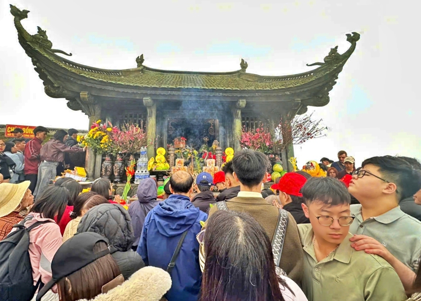 Du khách chiêm bái chùa Đồng, Yên Tử ngày mùng 4 Tết Bính Ngọ. Ảnh: MH