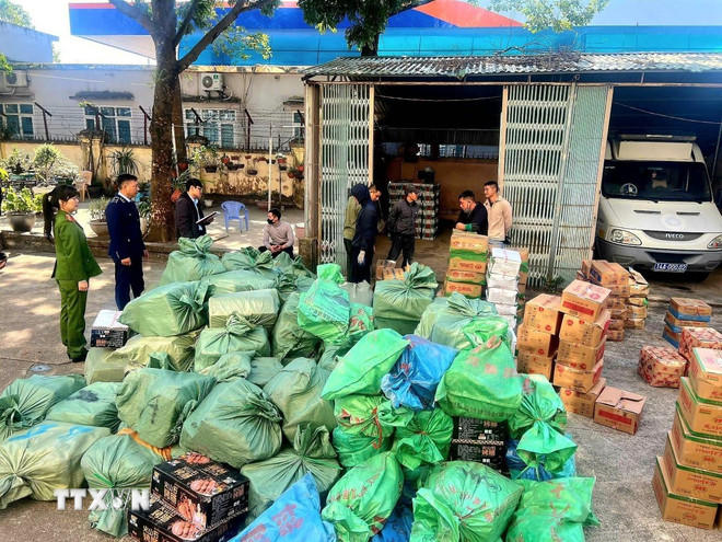 Ngày 28/1, Công an tỉnh Quảng Ninh thông tin, đơn vị vừa phối hợp với lực lượng Quản lý thị trường kịp thời phát hiện và thu giữ số lượng lớn thực phẩm không có hóa đơn, chứng từ đang chuẩn bị đưa ra thị trường tiêu thụ trong dịp Tết Nguyên đán.