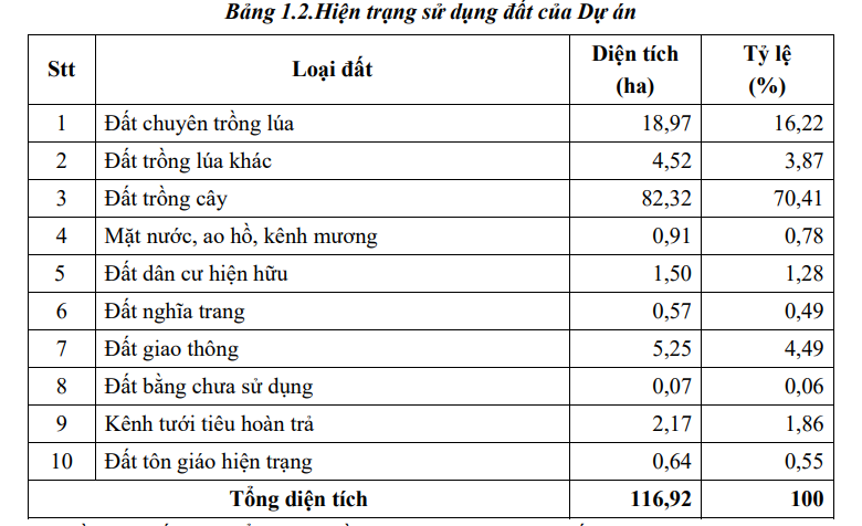 Dự án có yếu tố nhạy cảm do chuyển đổi 18,97 ha đất chuyên trồng lúa, loại đất cần được bảo vệ theo các quy định hiện hành.