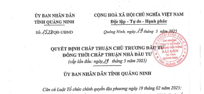 Dự án được chấp thuận chủ trương đầu tư đồng thời chấp thuận nhà đầu tư theo Quyết định số 1528/QĐ-UBND ngày 19/5/2025.