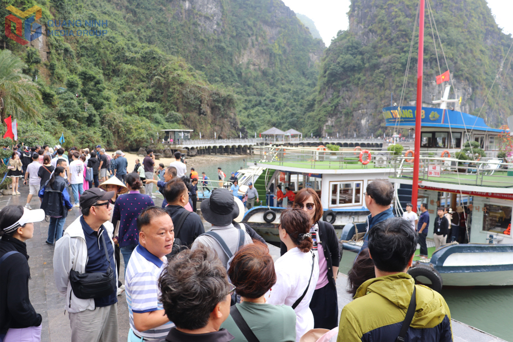 Du khách quốc tế tấp nập tham quan các đảo và hang động trên Vịnh Hạ Long.