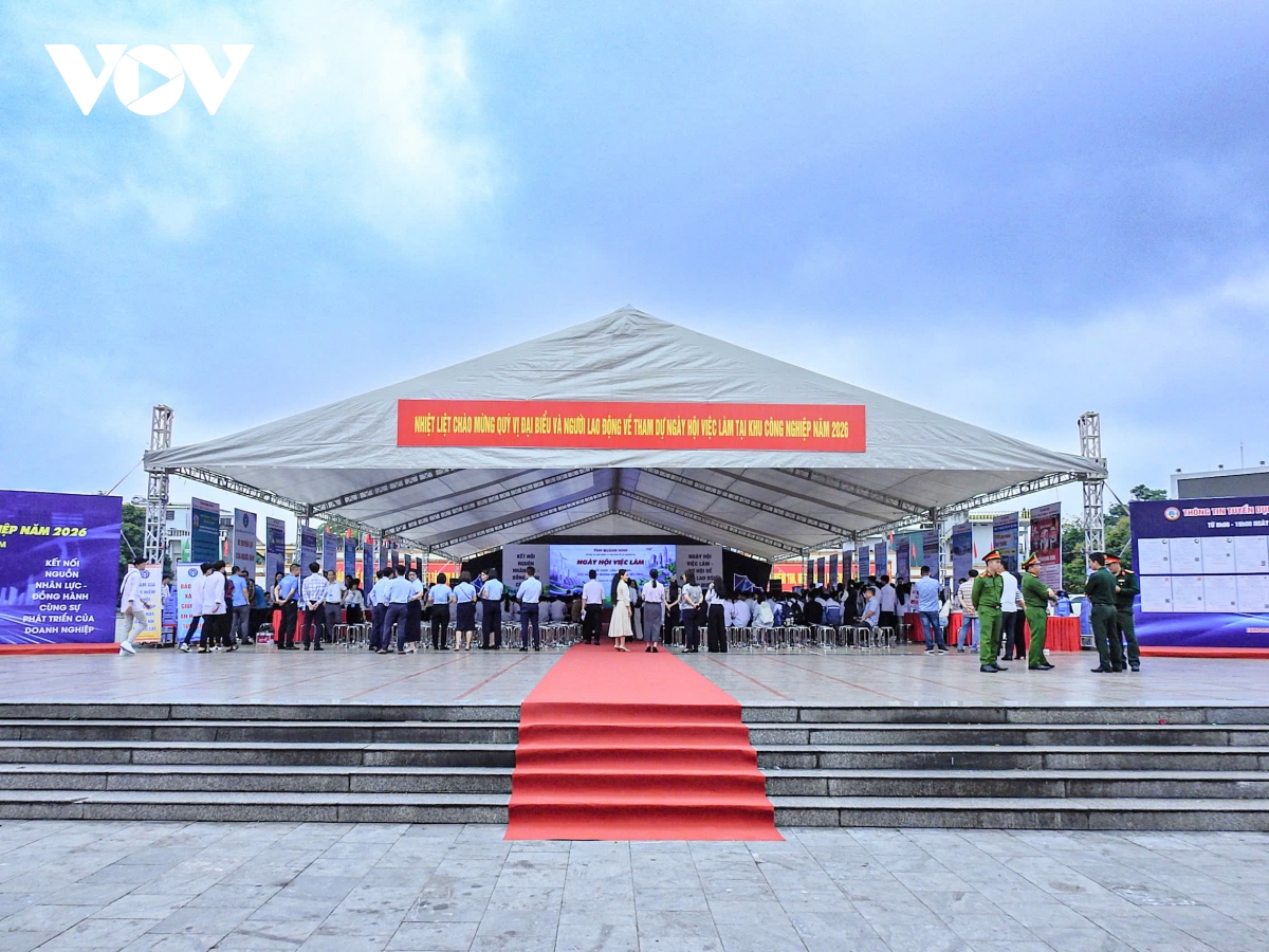 Tháng 3/2026, Quảng Ninh tổ chức hai ngày hội việc làm lớn đã thu hút khoảng 50 doanh nghiệp tham gia, tiếp cận hàng nghìn lao động, học sinh, sinh viên. (Ảnh: Đinh Hùng)