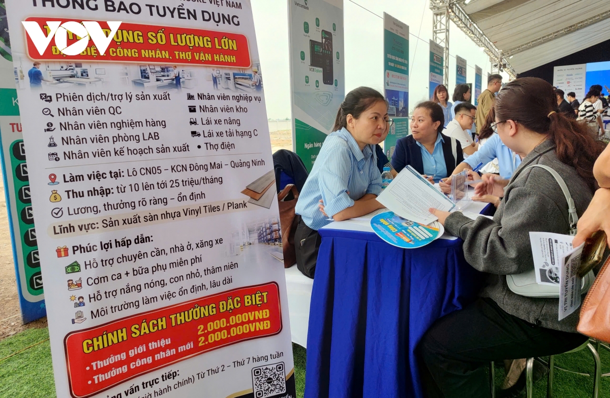 Giữa không gian rộng lớn, sôi động của ngày hội việc làm tại KCN Sông Khoai, phường Quảng Yên, tỉnh Quảng Ninh, anh Trần Văn Xuân, người đã có 8 năm làm việc tại Hải Phòng lặng lẽ đi qua từng gian hàng tuyển dụng. Không vội vàng, anh dừng lại tìm hiểu, so sánh, cân nhắc… bởi phía sau mỗi lựa chọn là câu chuyện ổn định cuộc sống lâu dài.