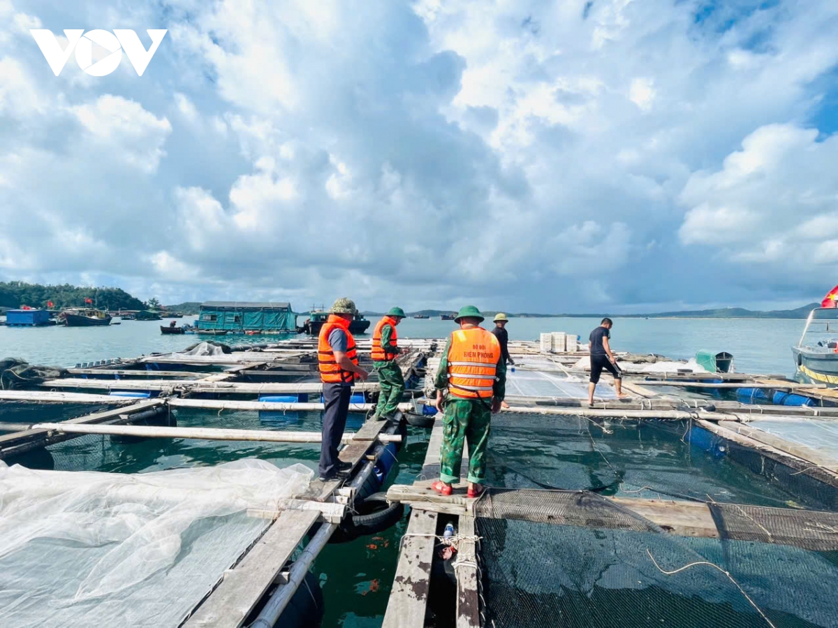 Các chiến sĩ trực tiếp đến từng hộ dân, từng lồng bè để kiểm tra, nhắc nhở và hỗ trợ bà con chằng chống nhà cửa, gia cố các công trình có nguy cơ bị ảnh hưởng do gió lớn, sóng mạnh.