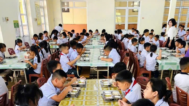 Các trường tổ chức bữa ăn bán trú cho các em học sinh.
