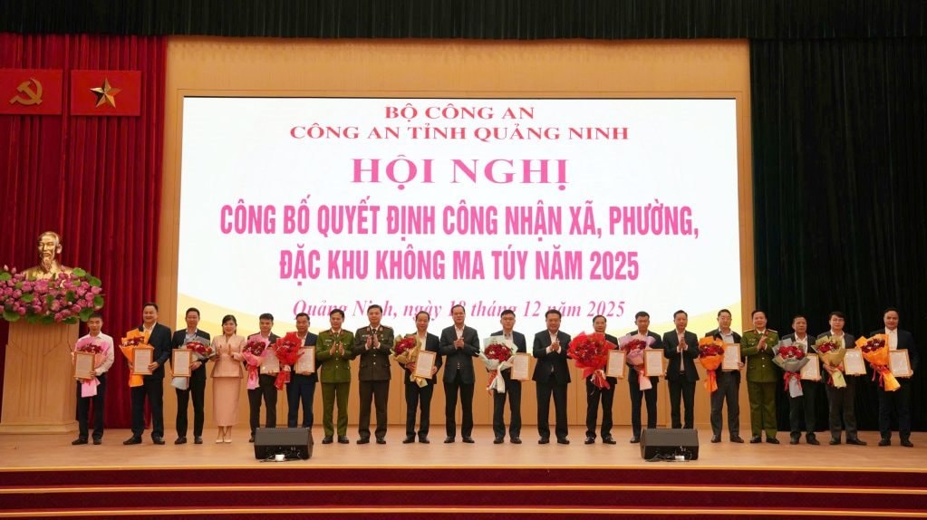Ngày 18/12, Công an tỉnh Quảng Ninh tổ chức hội nghị công bố quyết định công nhận 14 xã, phường và đặc khu đạt chuẩn “không ma túy” năm 2025.