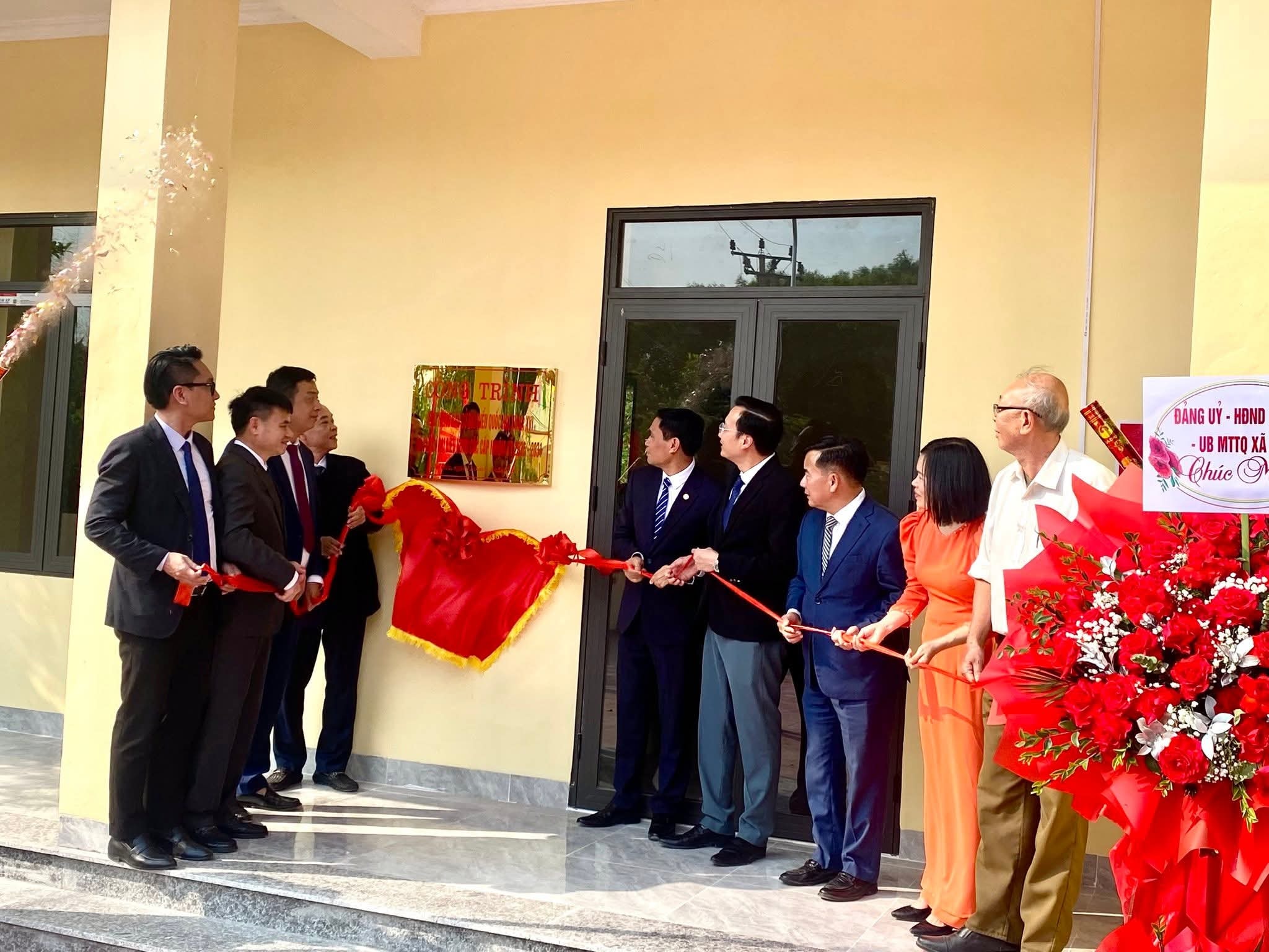 Các đại biểu gắn biển công trình nhà văn hóa, khu vui chơi thể thao thôn 2