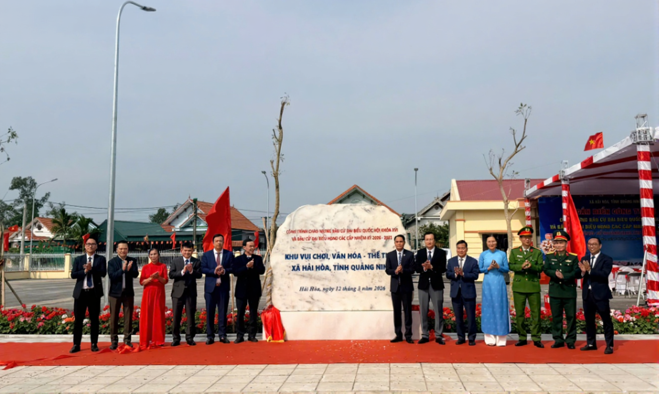 Đây là hai công trình được lựa chọn gắn biển chào mừng cuộc bầu cử đại biểu Quốc hội Khóa XVI và bầu cử đại biểu HĐND các cấp nhiệm kỳ 2026 – 2031. Đặc biệt, Nhà văn hóa thôn Hà Tranh cũng là địa điểm đặt Khu vực bỏ phiếu số 2 của xã Hải Hòa.