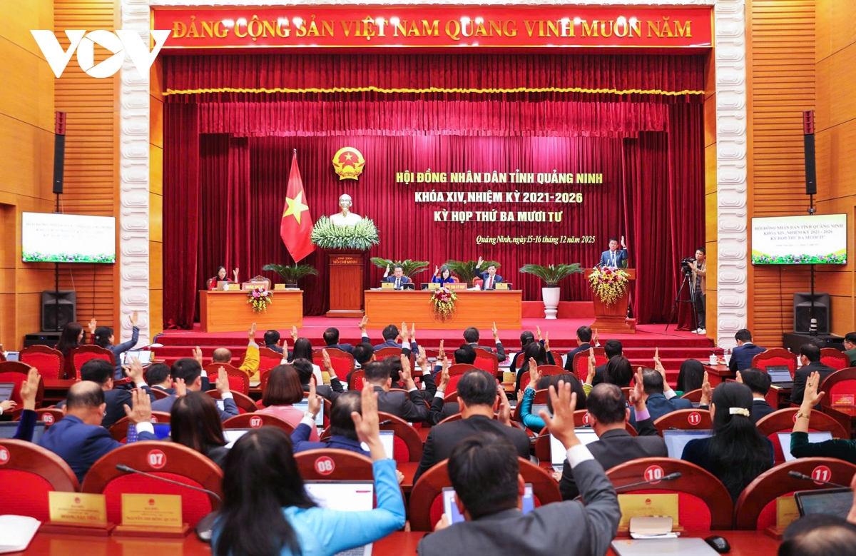 Cũng trong chiều 16/12, HĐND tỉnh Quảng Ninh đã quyết nghị thông qua 31 nghị quyết có ý nghĩa quan trọng, tác động đến nhiều mặt của đời sống xã hội nhằm thực hiện các mục tiêu phát triển năm 2026 và giai đoạn 2026-2031, trong đó, chỉ tiêu tăng trưởng kinh tế năm 2026 là 12,5%, đồng thời nâng cao chất lượng đô thị, sớm đạt tiêu chí thành phố trực thuộc Trung ương.