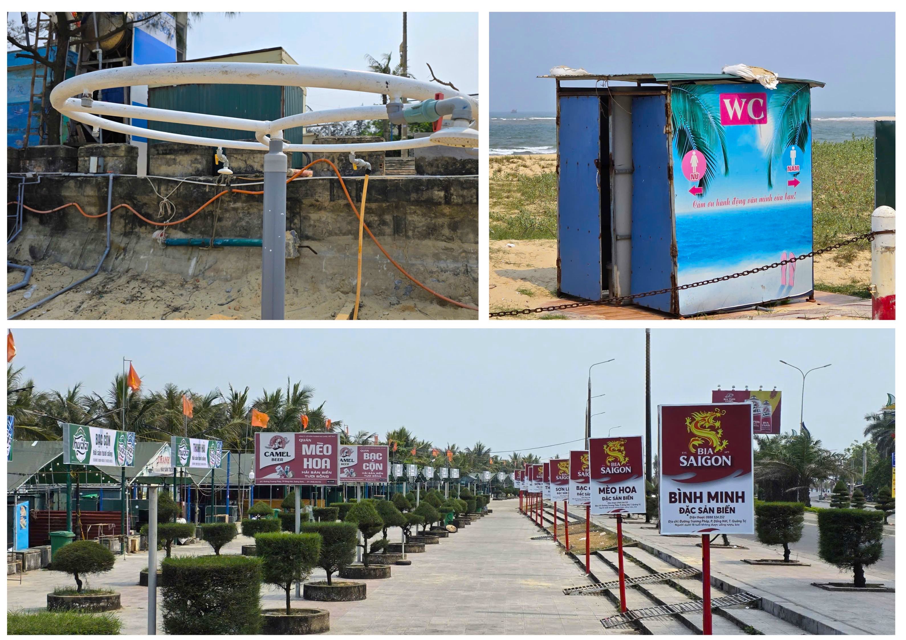Hàng quán nằm trên bờ biển, chiếm gần hết không gian công cộng ven biển. Ảnh: MINH TRƯỜNG.
