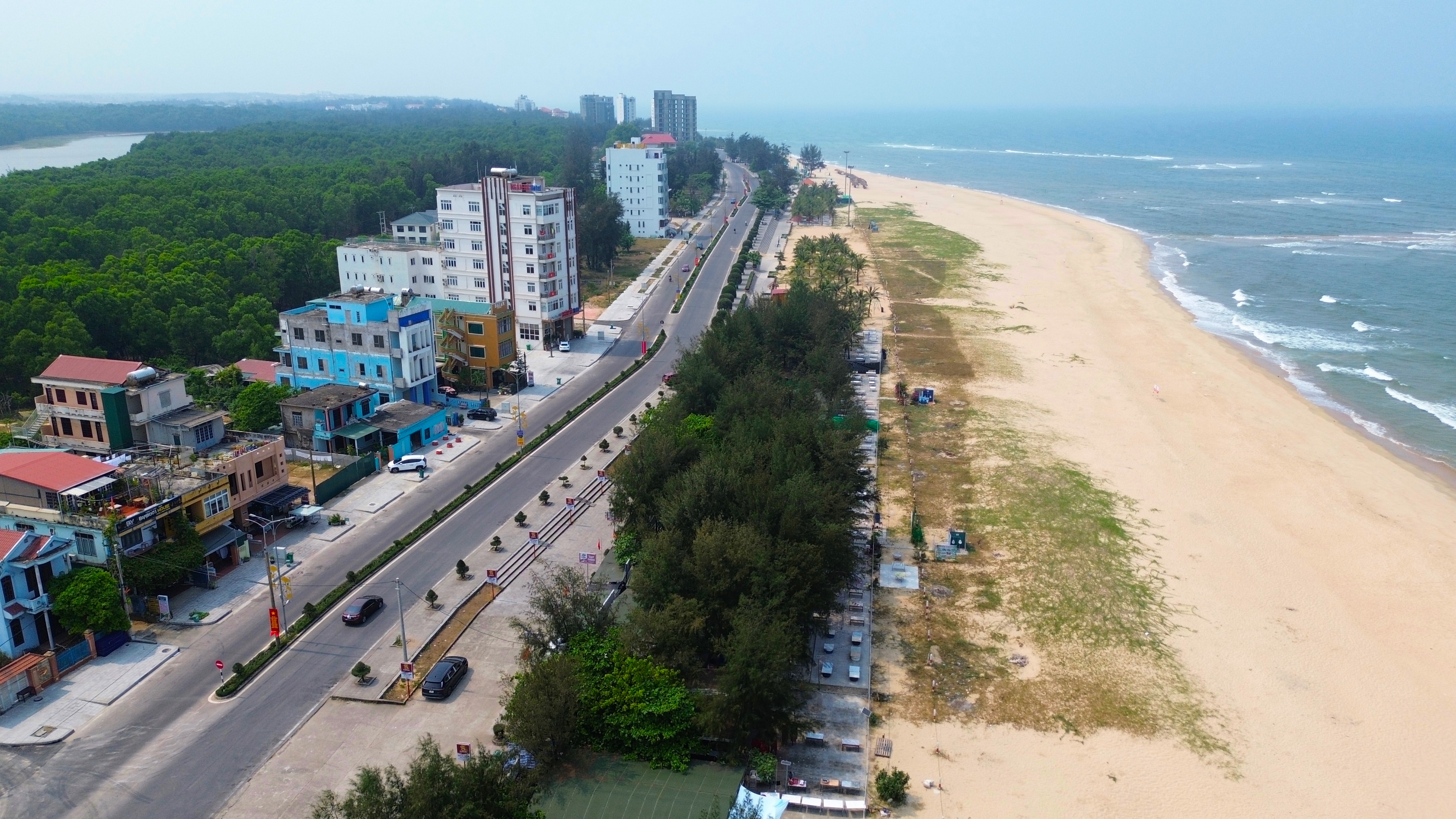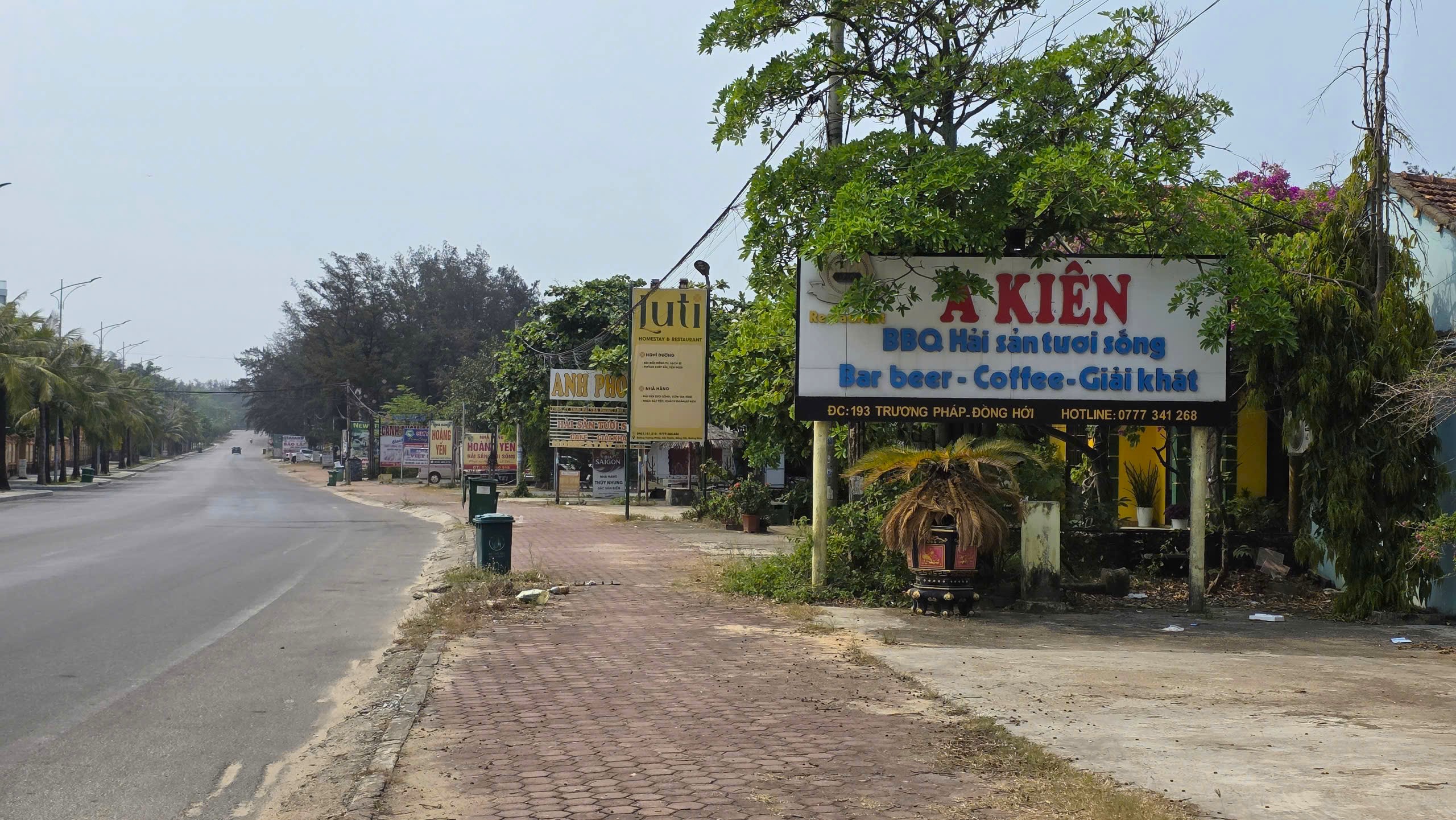 Đường Trương Pháp ở phường Đồng Hới, tỉnh Quảng Trị là đường ven biển Nhật Lệ; tập trung nhiều khách sạn, khu nghỉ dưỡng, hàng quán phục vụ khách du lịch. Ảnh: MINH TRƯỜNG.