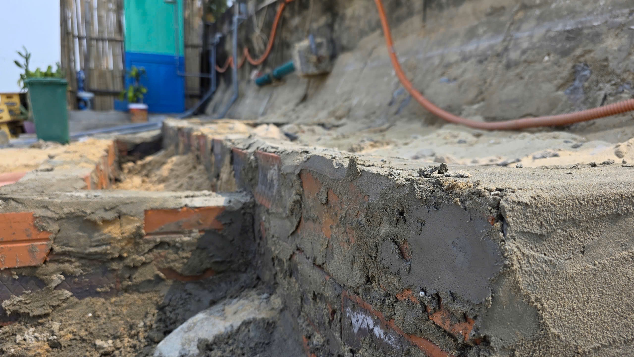 Bờ kè dọc đường Trương Pháp bị sóng đánh vỡ nát. Ảnh: MINH TRƯỜNG.