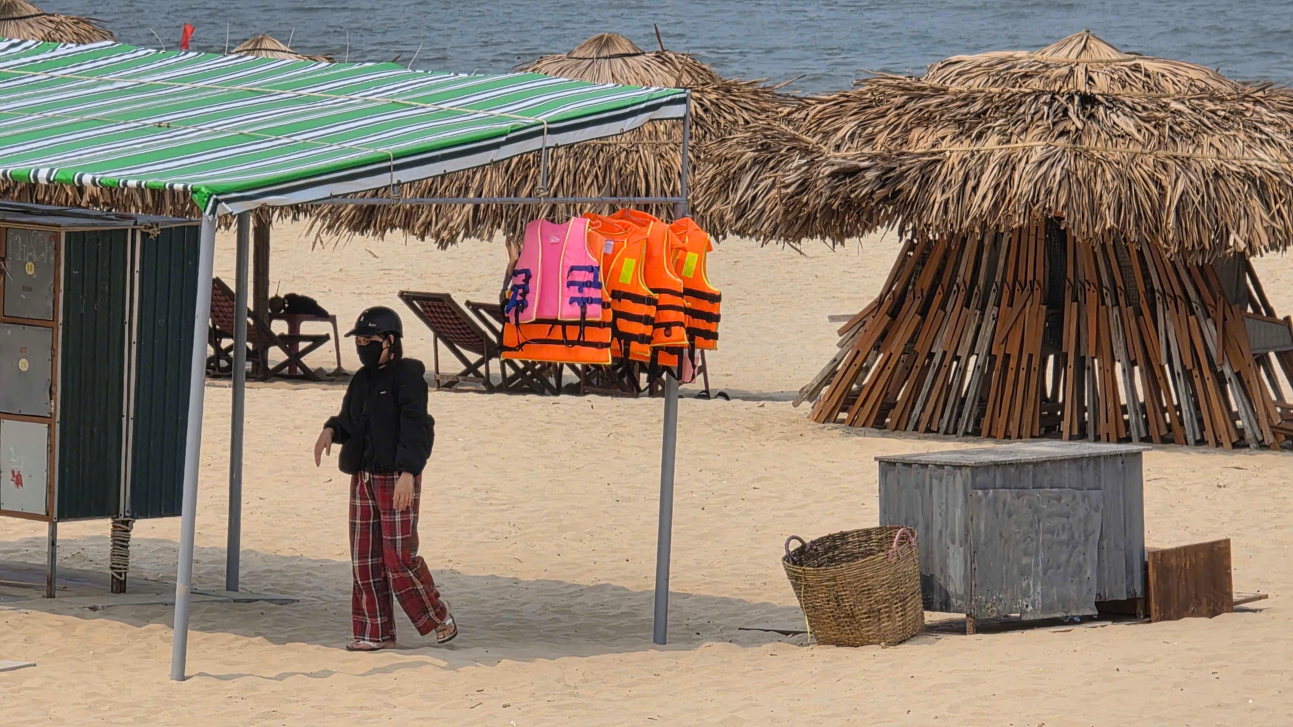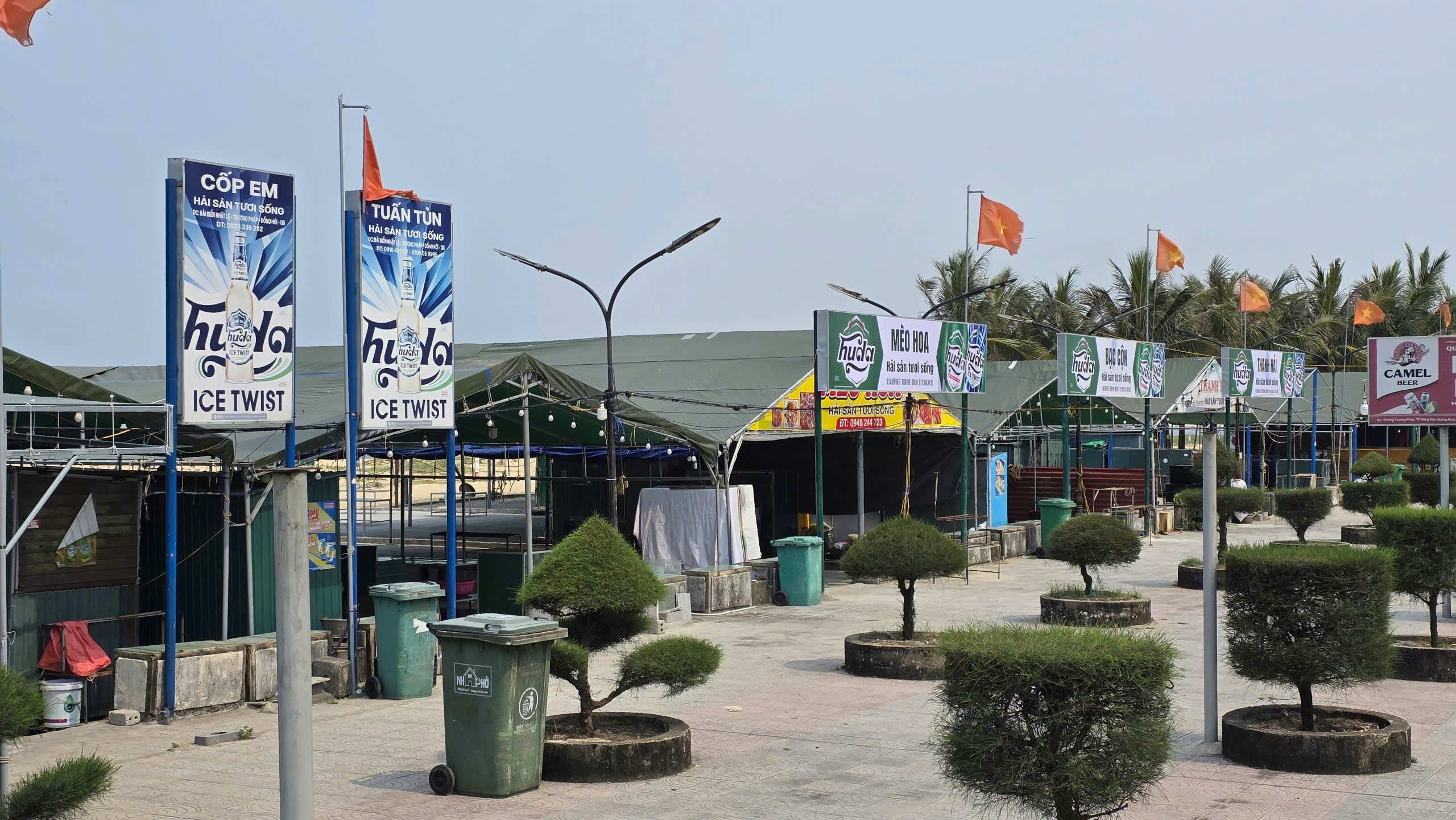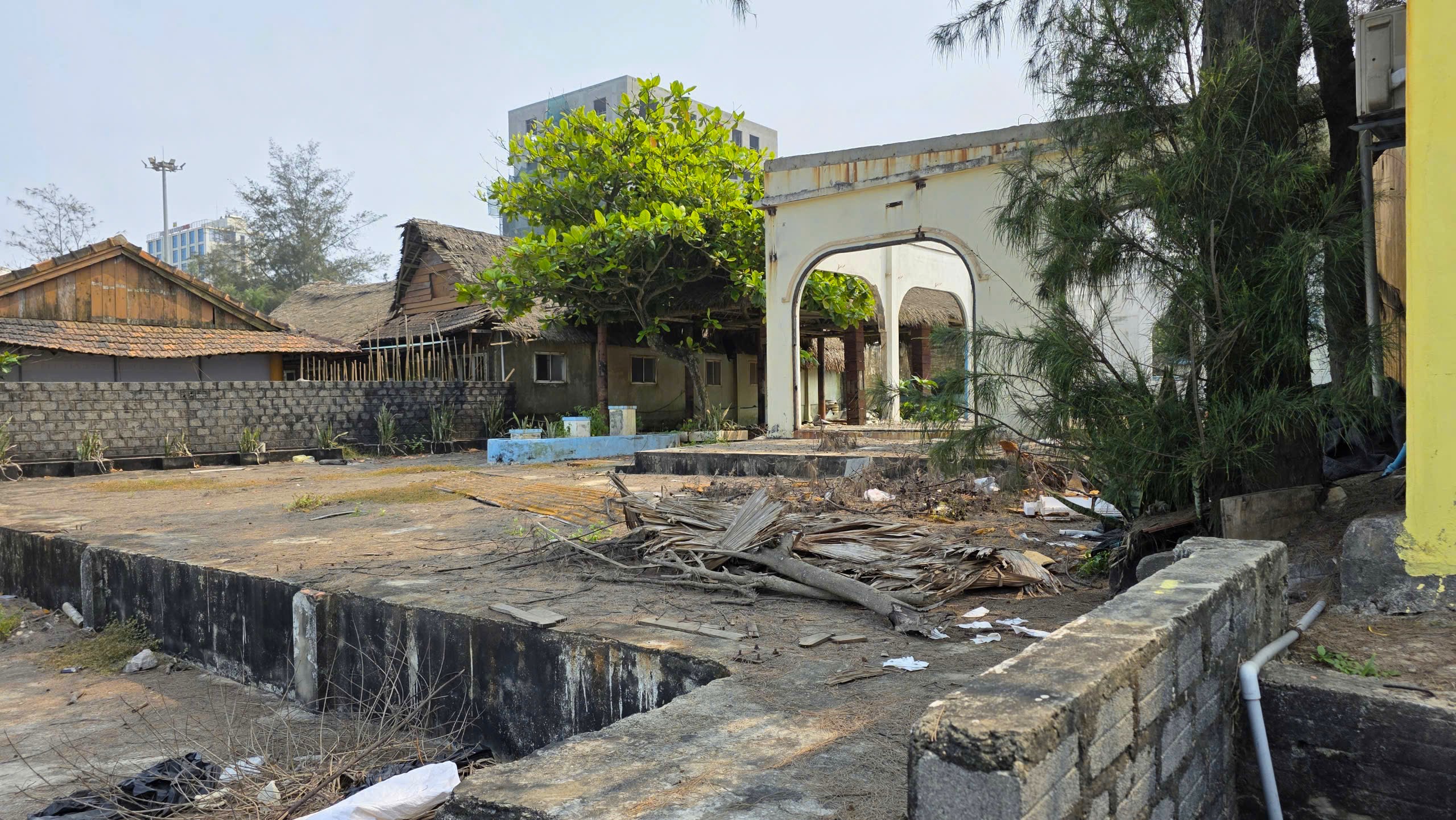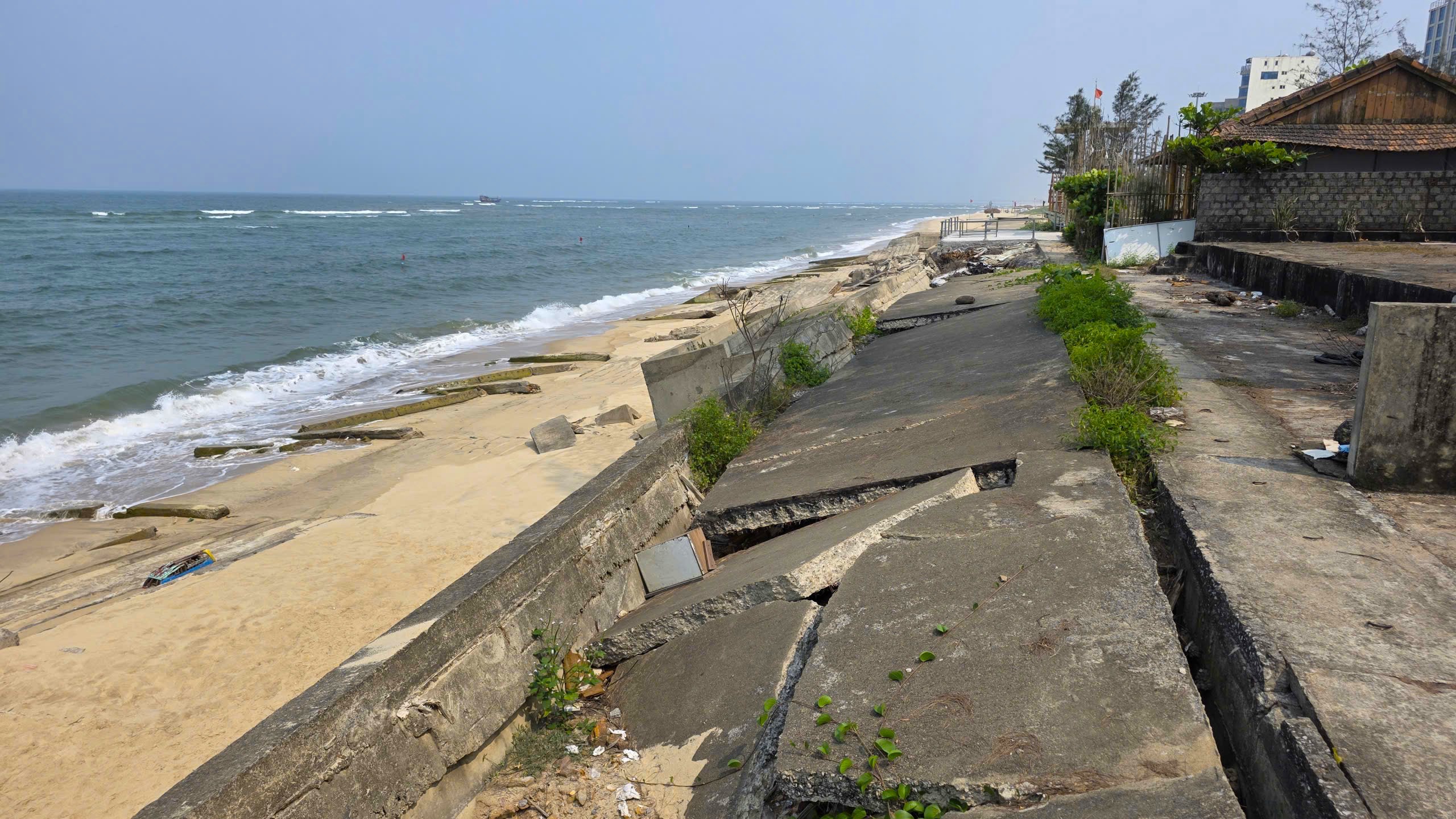 Vì bờ kè ven biển bị đánh sập nên nhiều chủ quán hàng cũng 'bỏ chạy'. Ảnh: MINH TRƯỜNG.
