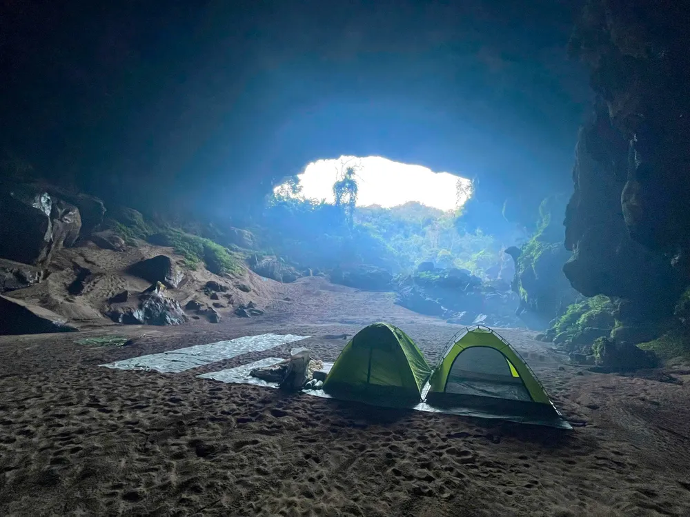Cắm trại trong lòng hang động được nhiều du khách ưa thích. Ảnh: MT