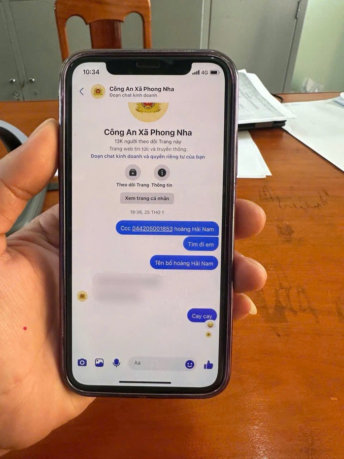 Tiếp nhận thông tin, Công an xã Phong Nha đã áp dụng các biện pháp nghiệp vụ để xác minh và xác định P.A.D. là người liên quan trực tiếp đến vụ việc. Qua kiểm tra, cơ quan công an xác định dãy số căn cước công dân cũng như tên tuổi mà D. cung cấp trong tin nhắn đều không đúng sự thật.