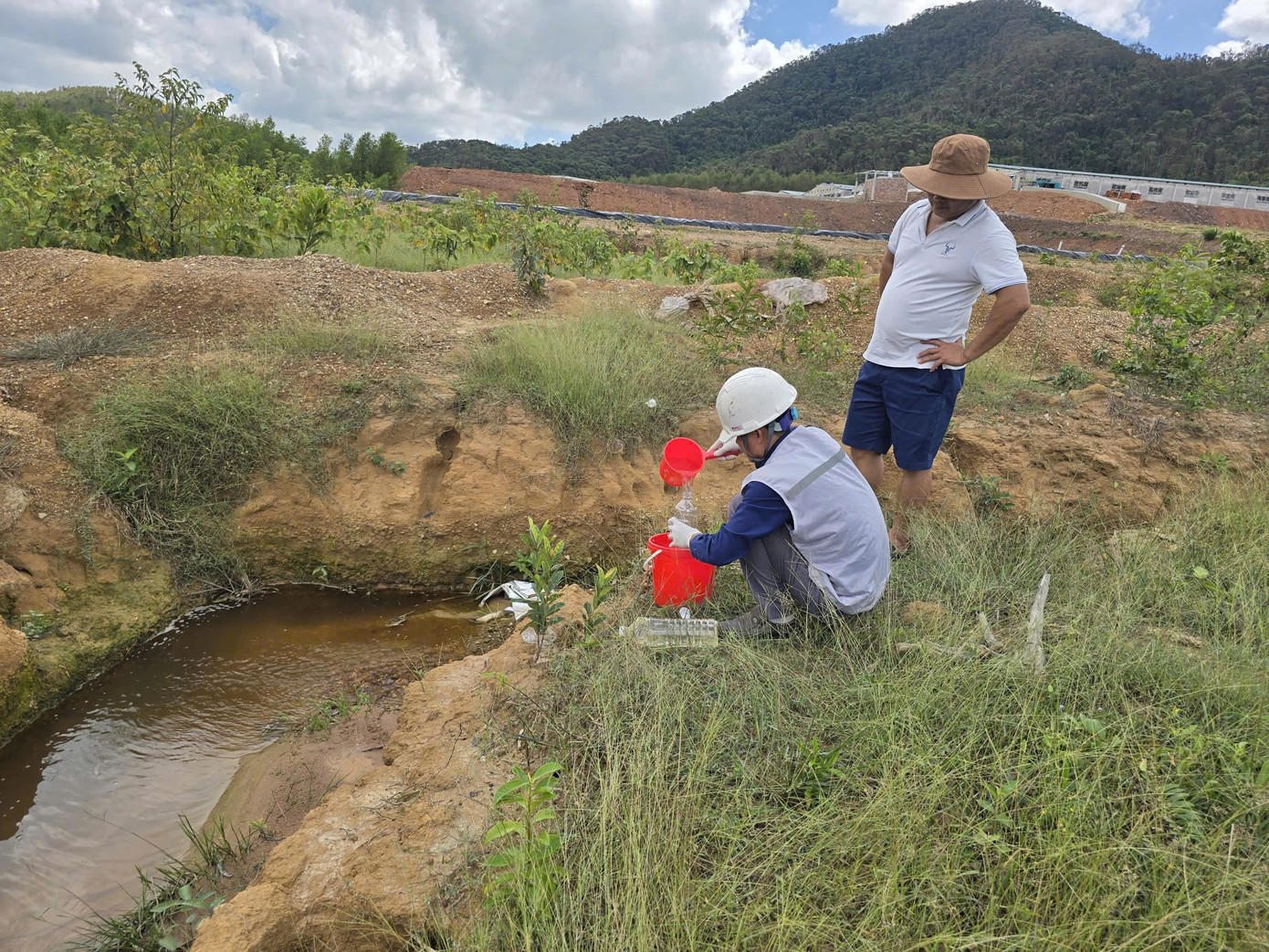 Cơ quan chức năng lấy mẫu nước để xét nghiệm.