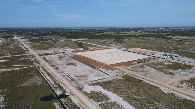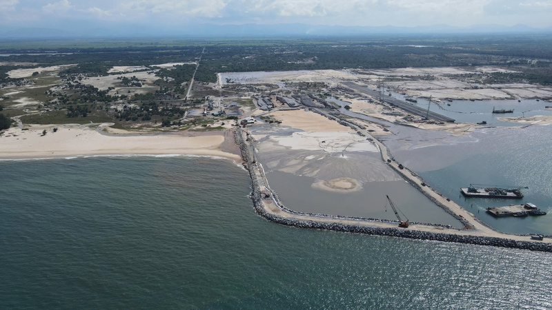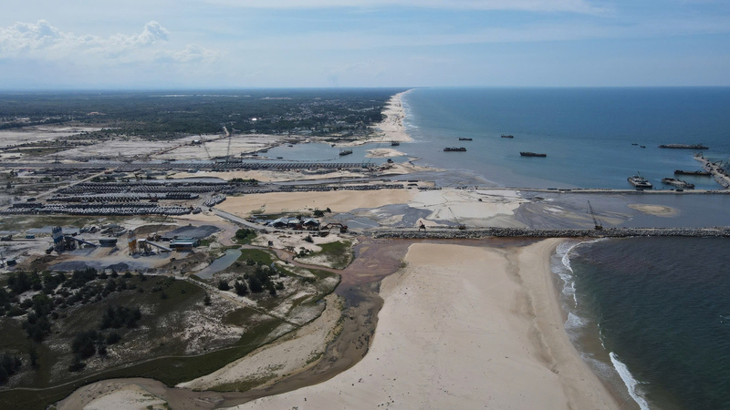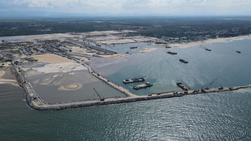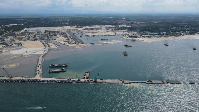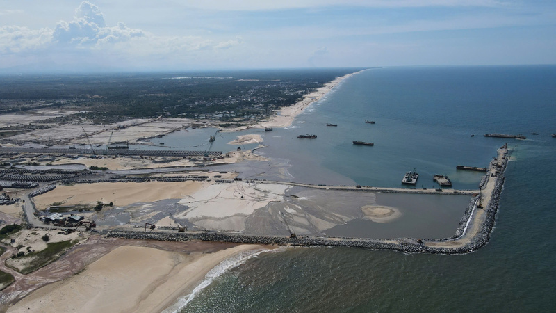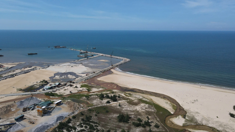 Hiện nay, nhà đầu tư đang tập trung thi công các hạng mục đê chắn sóng phía đông, cầu bến số 1, số 2 và nạo vét luồng tàu. Mục tiêu được đặt ra là hoàn thành và đưa vào khai thác 2 bến cảng đầu tiên vào tháng 4/2026.