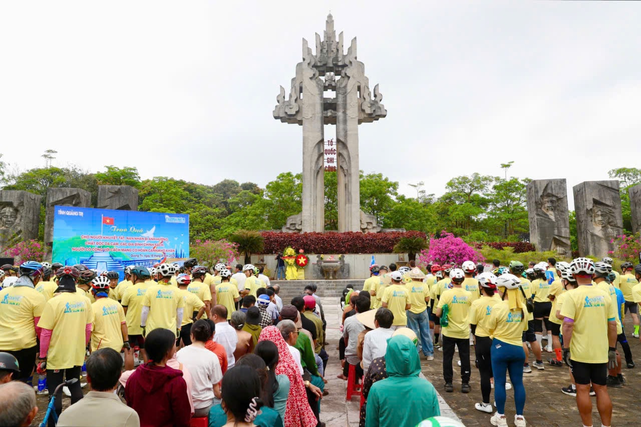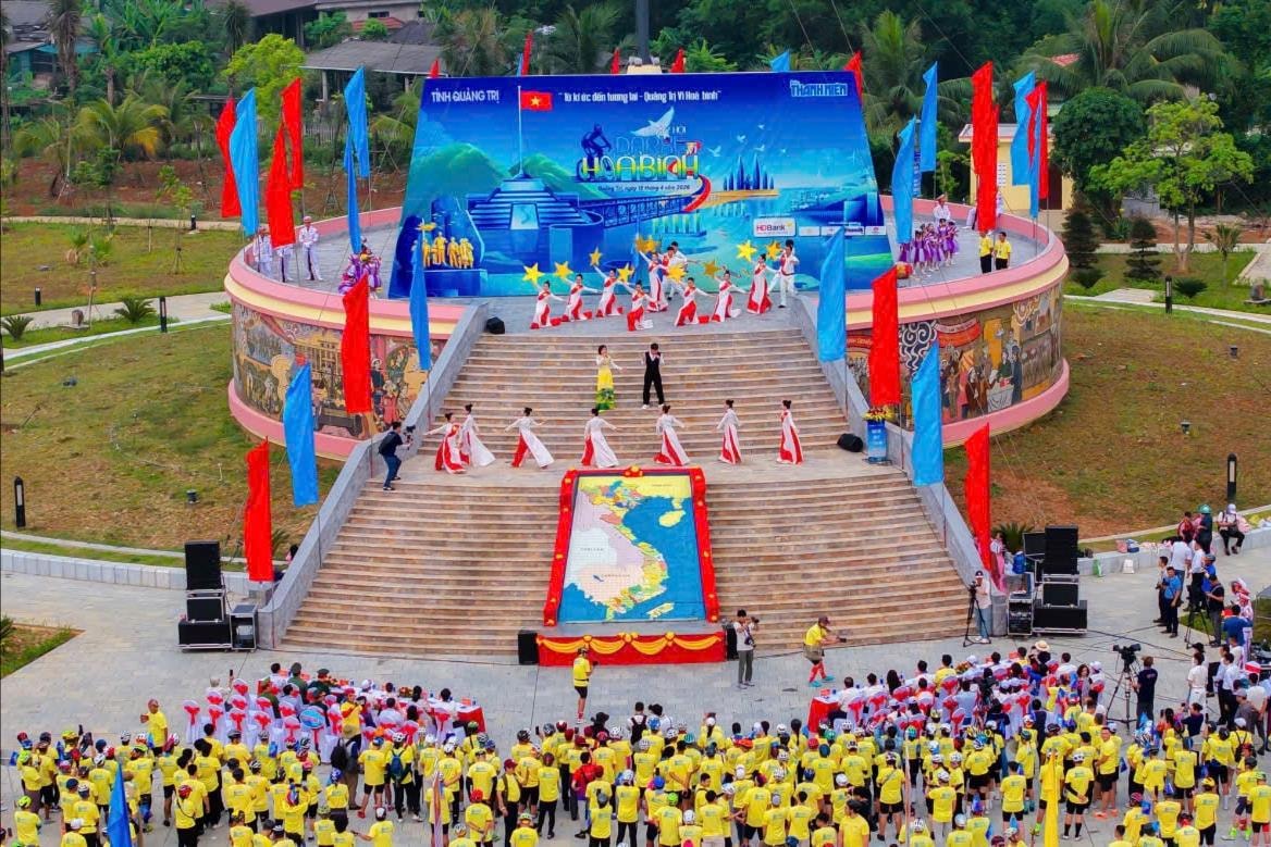 Ngày hội Đạp xe vì hòa bình năm 2026 tỉnh Quảng Trị được khai mạc dưới kỳ đài tại Di tích lịch sử quốc gia đặc biệt Đôi bờ Hiền Lương - Bến Hải