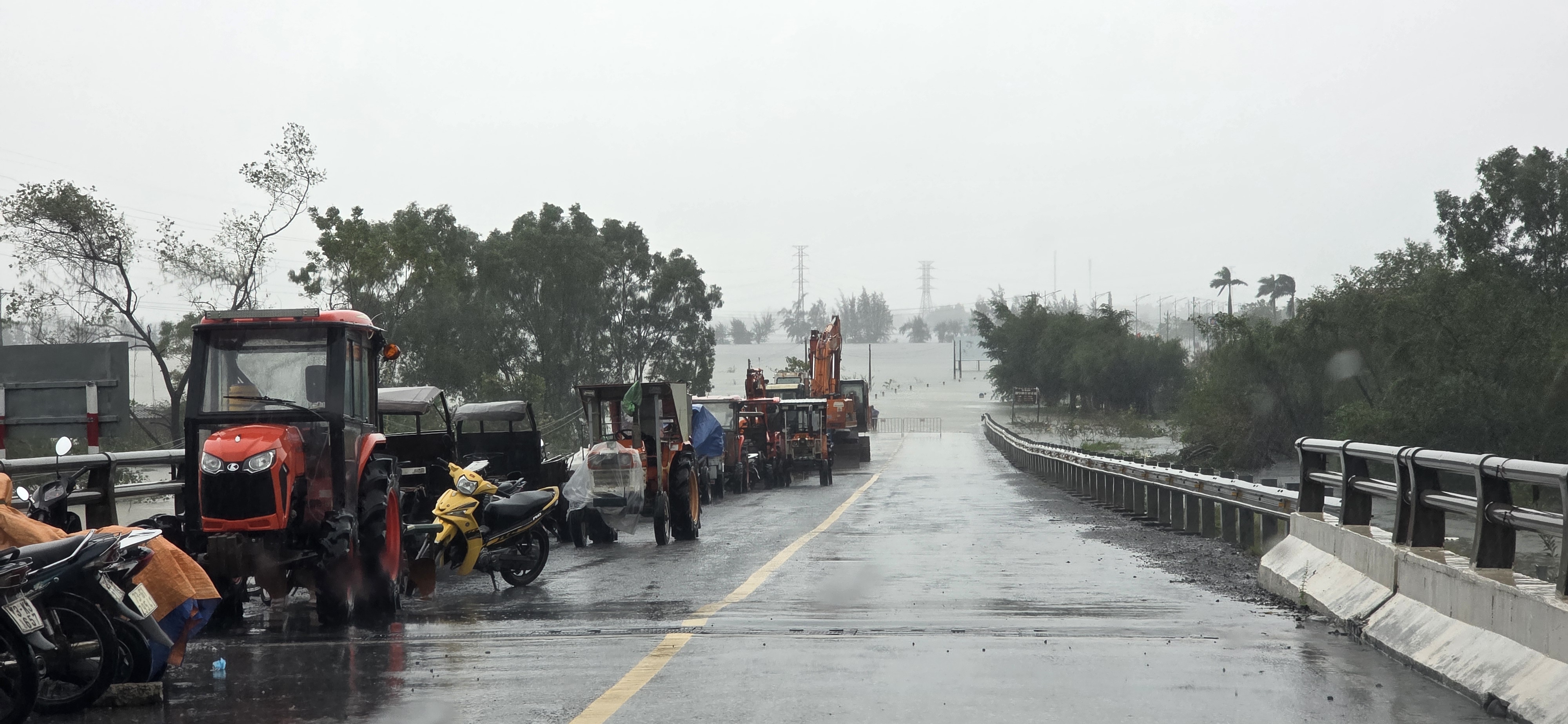 Cùng ngày, toàn tuyến biên giới Quảng Trị có 24 điểm ngập lụt và 7 điểm sạt lở. Trên địa bàn Đồn Biên phòng Làng Ho, quốc lộ 9C (km29+100) bị sạt lở hơn 1.000 m³ đất đá, giao thông bị chia cắt. Tại quốc lộ 9B, cầu Tây Long Đại (km48+20) xuất hiện điểm sạt lở lớn, có nguy cơ làm xói mố cầu. Lực lượng biên phòng phối hợp chính quyền đã lập chốt, ngăn người dân qua lại để đảm bảo an toàn.