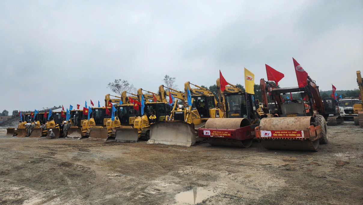 Các nhà thầu đã bố trí nhân lực, thiết bị máy móc để triển khai thi công ngay sau buổi lễ Khởi công dự án mở rộng cao tốc Cam Lộ - La Sơn".