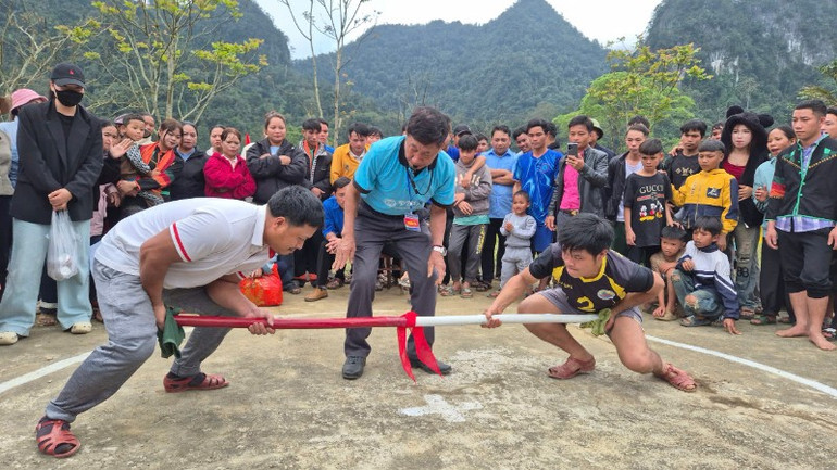 Trưởng bản Mò O Ồ Ồ Cao Xuân Long chia sẻ, lần đầu tiên chương trình xuân biên phòng được tổ chức tại bản Rục nên bà con háo hức, chờ mong. Từ sáng sớm, nhiều người đã có mặt để tham gia các trò chơi dân gian và nhận những phần quà có giá trị.