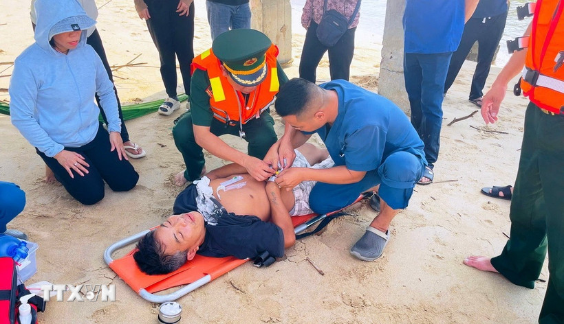 Khoảng 8 giờ cùng ngày, Đồn Biên phòng Nhật Lệ nhận được tin báo từ tàu cá, đề nghị hỗ trợ. Ngay sau đó, đơn vị triển khai lực lượng và phương tiện ra biển để sơ cứu và đưa bệnh nhân vào bờ.