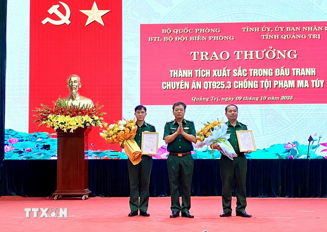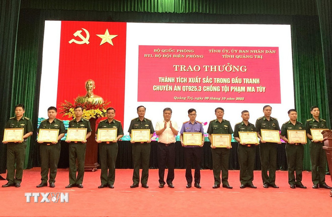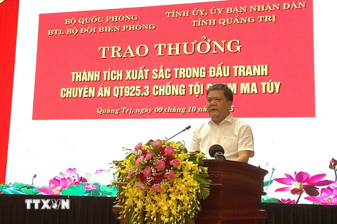 Sáng 9/10, Bộ Tư lệnh Bộ đội Biên phòng và Tỉnh ủy, Ủy ban Nhân dân tỉnh Quảng Trị tổ chức trao thưởng cho các cá nhân, tập thể đã có thành tích xuất sắc trong đấu tranh Chuyên án QT925.3 chống tội phạm ma túy.
