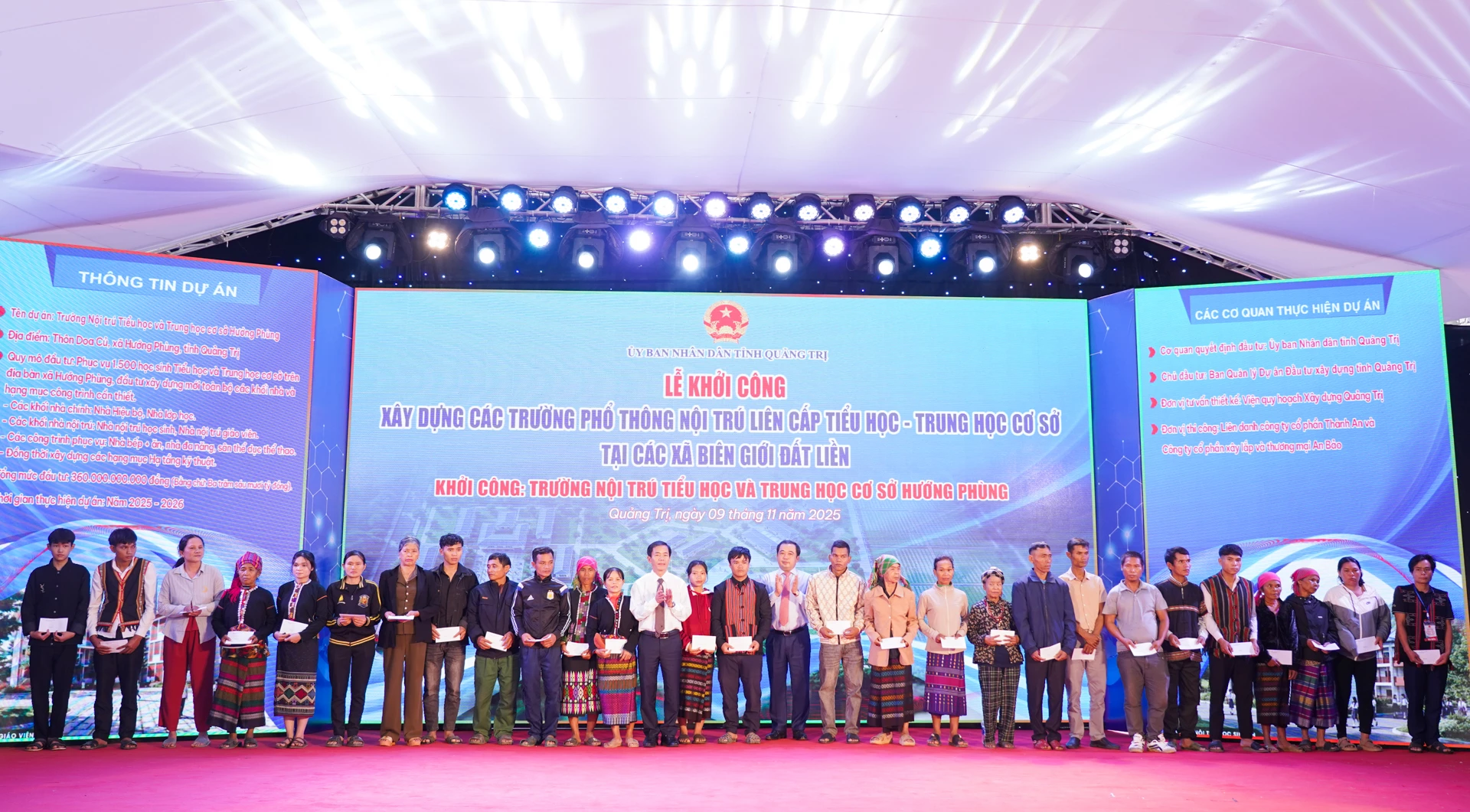 Tiếp đó, chương trình lễ khởi công Trường nội trú Tiểu học và THCS Hướng Phùng được tiếp tục nối sóng cầu truyền hình cùng với 13 địa phương trong cả nước đồng loạt bấm nút khởi công.