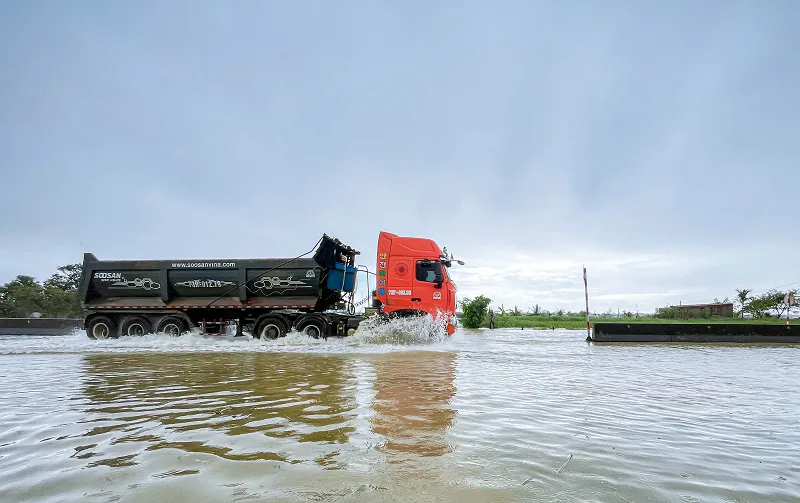Một số điểm trên tuyến quốc lộ 1 ngập sâu, ách tắc cục bộ.