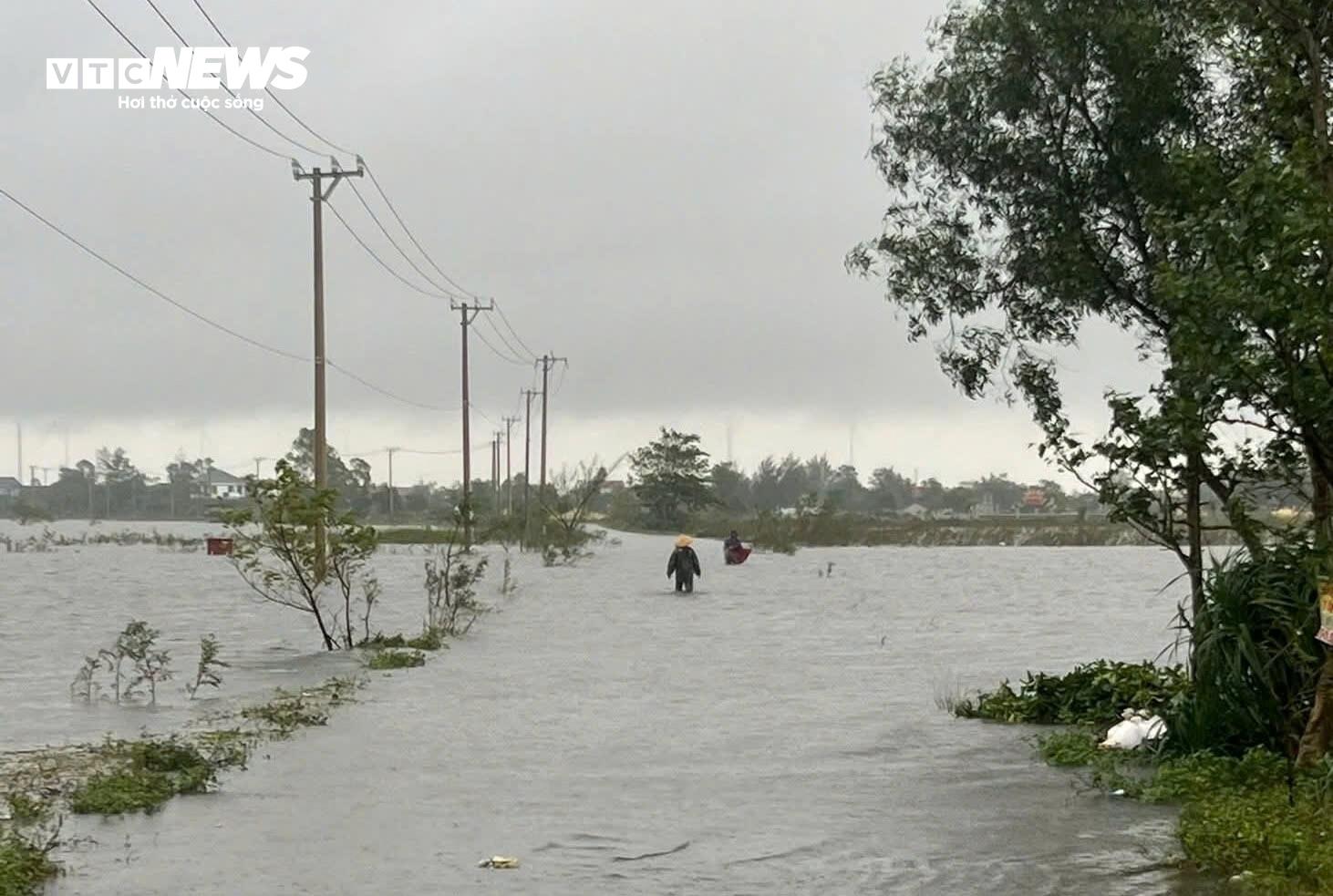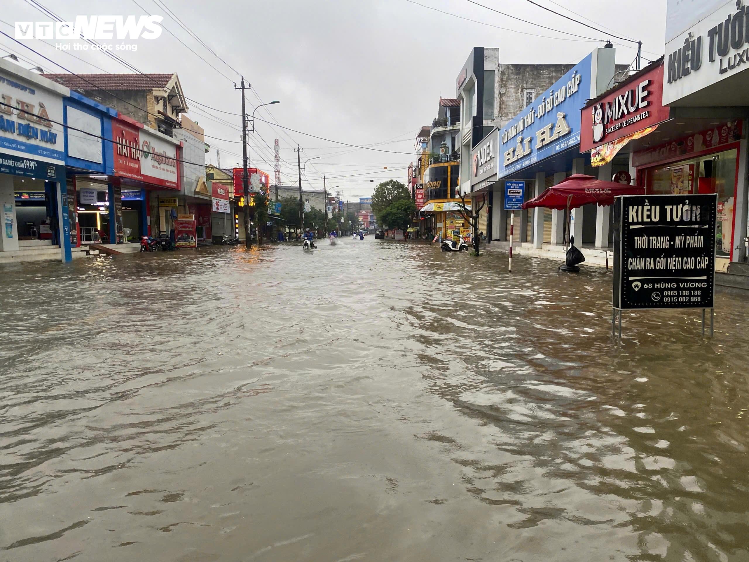 Ghi nhận của PV Báo Điện tử VTC News, hiện Quảng Trị đang mưa xối xả, nước tại các sông lên cao khiến nhiều địa phương như Lệ Thủy, Tân Mỹ, Cam Hồng, Quảng Ninh, Ninh Châu, phường Bắc Gianh, Ba Đồn… ngập sâu.