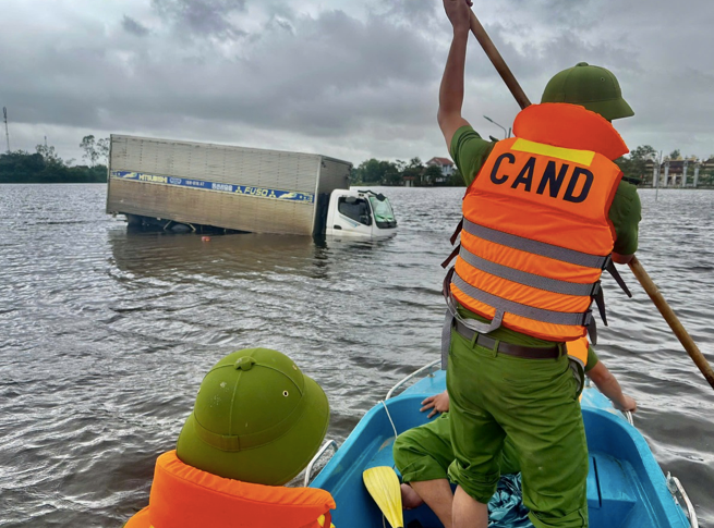 Tại xã Mỹ Thủy, sáng 28/10, một xe tải mang BKS 18H – 019.47 bị chết máy khi đi qua khu vực ngập sâu. Lực lượng công an và chính quyền địa phương đã kịp thời có mặt, cứu hộ thành công 2 người trên xe.
