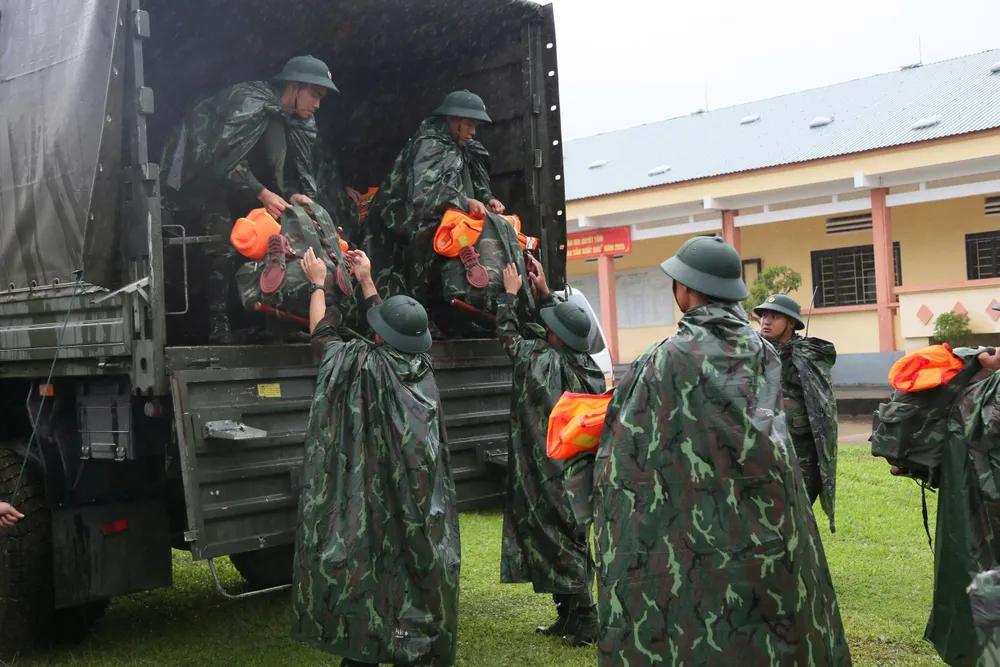 Hàng ngàn chiến sĩ sẵn sàng hỗ trợ ứng phó mưa lũ do bão số 12 gây ra. Ảnh: MINH TRƯỜNG