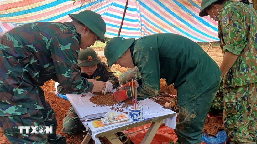 Đội quy tập hài cốt liệt sỹ, Đoàn Kinh tế - Quốc phòng 337 (Quân khu 4) quy tập, cất bốc các hài cốt liệt sỹ. (Ảnh: TTXVN phát)