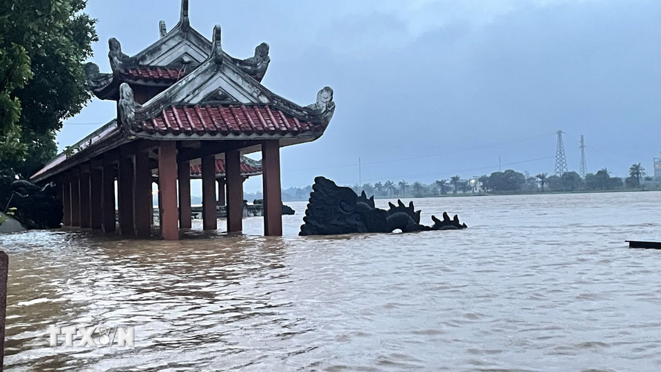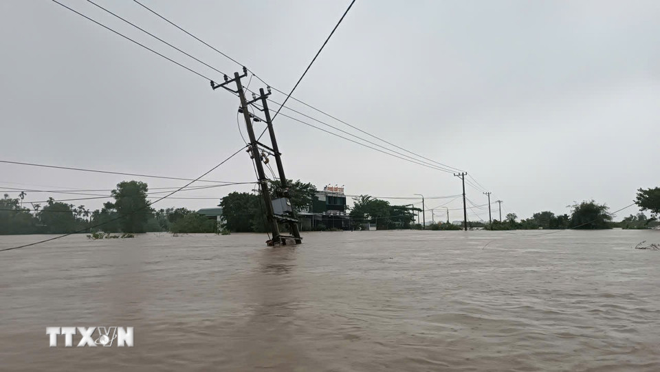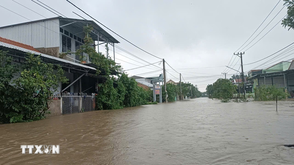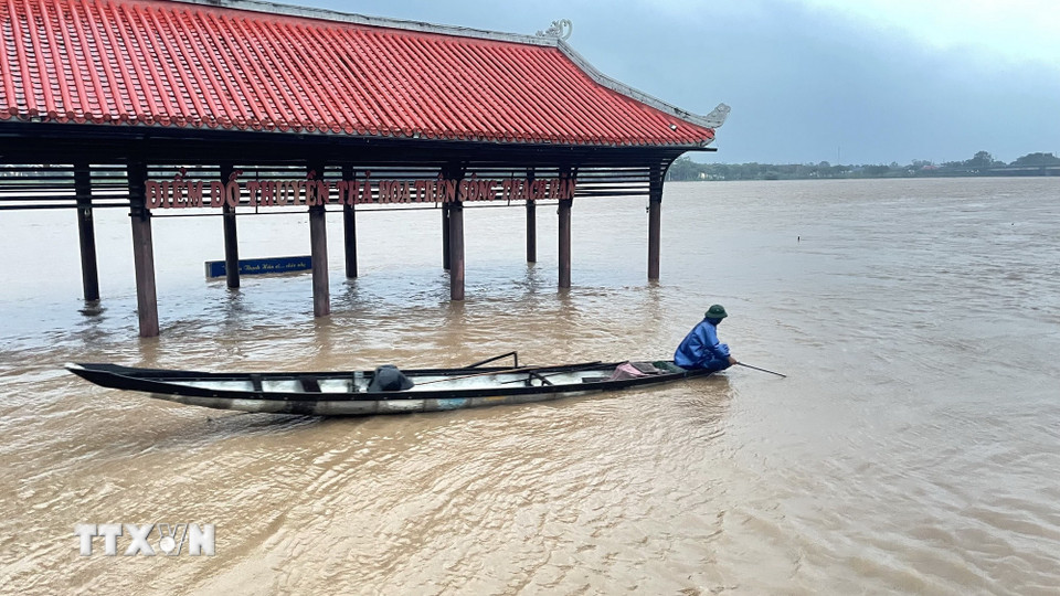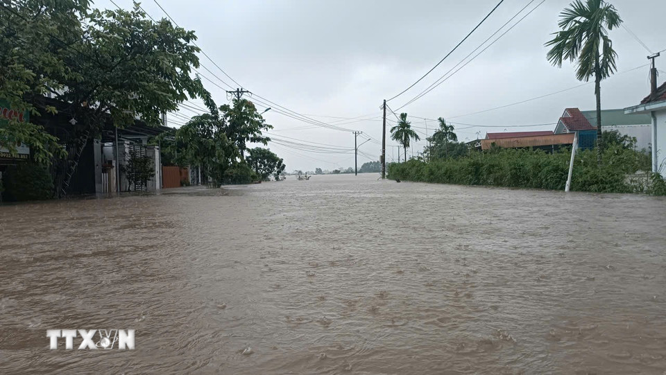 Lũ trên các sông ở Quảng Trị đang lên nhanh khiến nhiều nơi chìm trong nước. (Ảnh: Thanh Thủy/TTXVN)