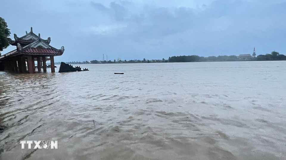 Nước sông Hương dâng nhanh, gây ngập lụt, cô lập nhiều phường, xã (Ảnh: Văn Dũng/TTXVN)