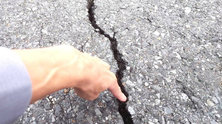 Vết nứt mặt đường trên đèo Ngang có chỗ lọt cả ngón tay.