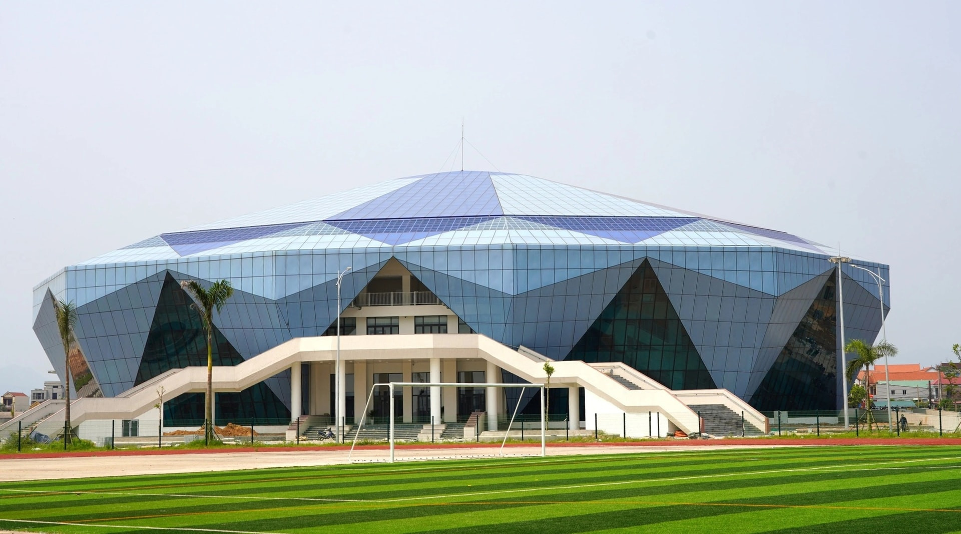 Điểm nhấn kiến trúc nổi bật nhất của dự án là nhà thi đấu đa năng cao gần 27m, có diện tích sàn khoảng 9.200m². Công trình được thiết kế theo hình khối hiện đại, mô phỏng viên kim cương với hệ thống kính cường lực tiết kiệm năng lượng kết hợp các giải pháp thông gió tự nhiên, giúp tối ưu hóa ánh sáng và không khí.