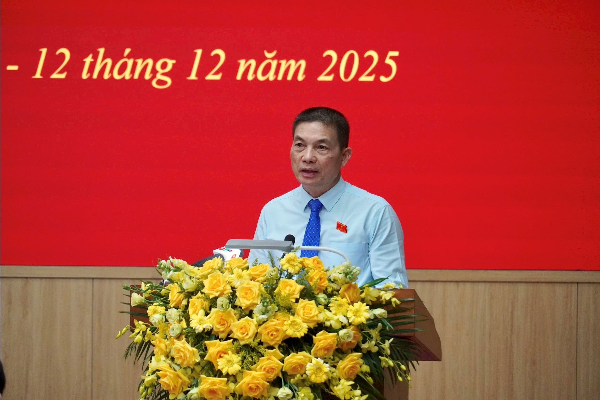 Giám đốc Sở Xây dựng Trương Chí Trung thông tin tại kỳ họp.
