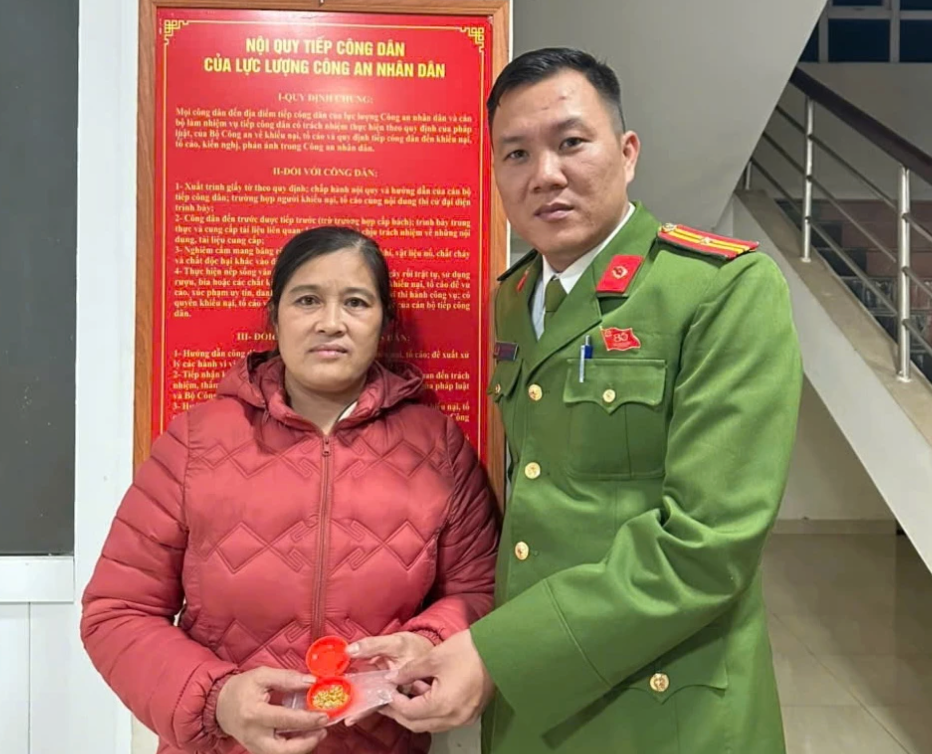 Công an xã Vĩnh Linh trao trả số vàng cho chủ nhân.