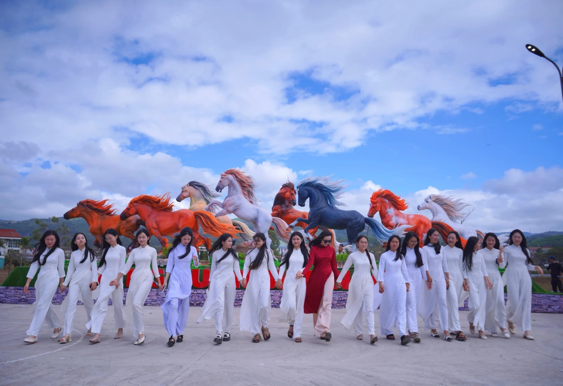 "Mã đáo thành công" là tổ hợp các linh vật ngựa được xã Lao Bảo xây dựng để tạo điểm nhấn trong dịp Tết Nguyên đán năm nay.