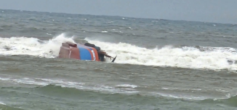 Tàu cá bị lật tại biển Nhật Lệ. Ảnh: Hoài Nam