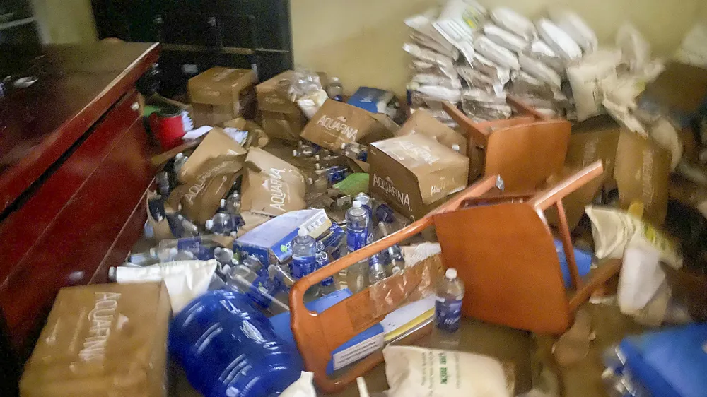Nhiều giấy tờ, đồ đạc tại trụ sở UBND xã Đakrông bị ướt, trôi do nước lũ.