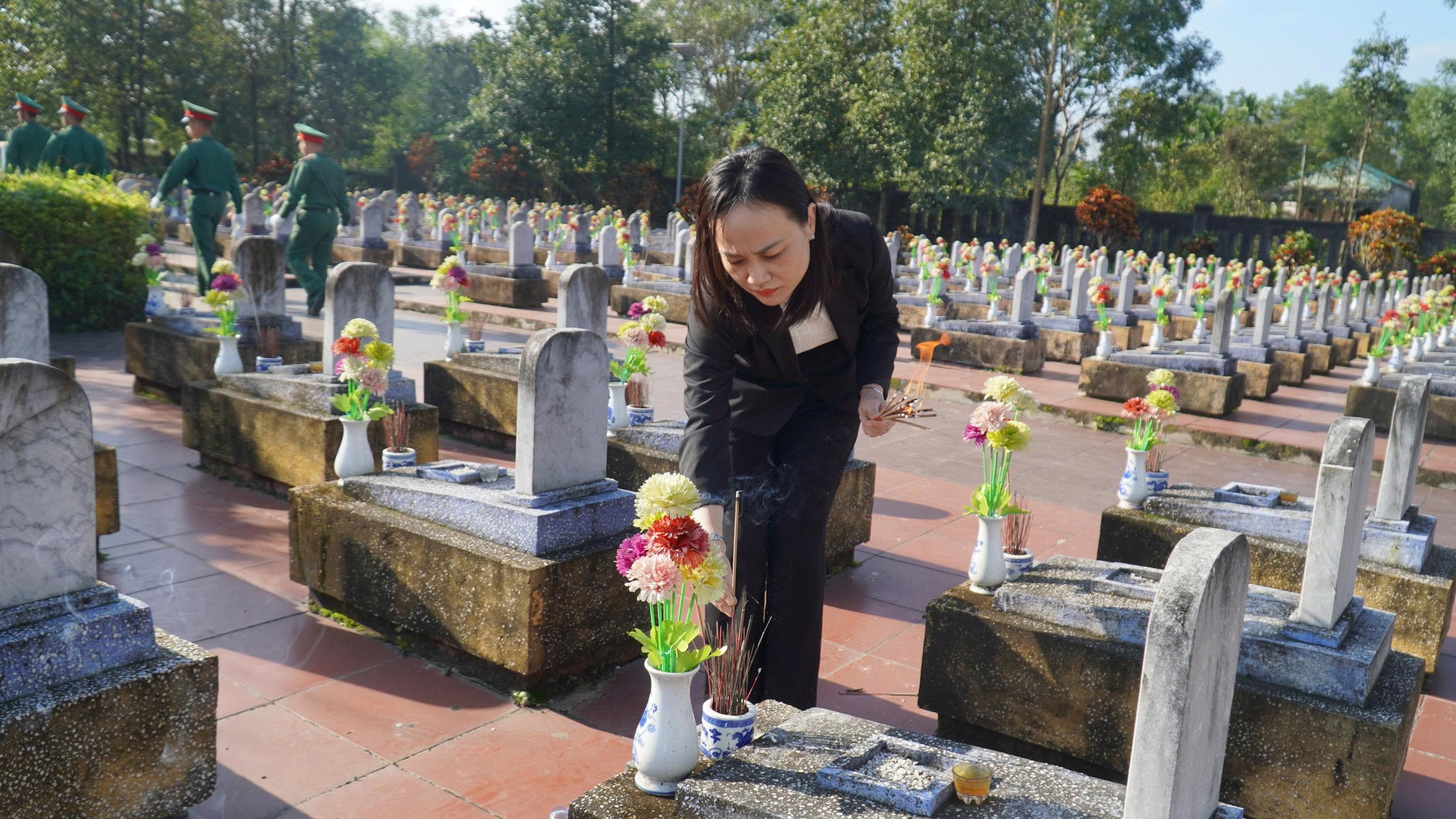 Bà Lê Nguyễn Huyền Trang – Phó Giám đốc Sở Nội vụ tỉnh Quảng Trị thắp hương viếng các anh hùng liệt sĩ tại nghĩa trang liệt sĩ xã Cam Lộ, tỉnh Quảng Trị.