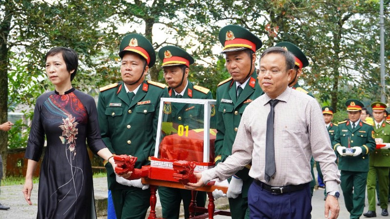 Ngay sau lễ truy điệu, 14 hài cốt liệt sĩ đã được an táng trang trọng trong lòng đất mẹ tại Nghĩa trang liệt sĩ xã Khe Sanh, giữa niềm thành kính và xúc động của cán bộ, chiến sĩ cùng đông đảo nhân dân địa phương.