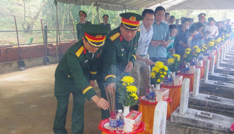 Lễ viếng, truy điệu và an táng 14 hài cốt liệt sĩ tại Nghĩa trang liệt sĩ xã Khe Sanh, tỉnh Quảng Trị.