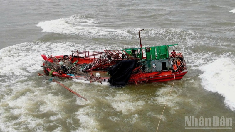 Trong lúc vào cửa sông Nhật Lệ, cách bờ khoảng 500m, tàu bị sóng lớn đánh chìm. Nhận được tin báo, Đồn Biên phòng Nhật Lệ cử 8 cán bộ, chiến sĩ trên trên 1 xuồng cứu hộ phối hợp với các lực lượng, chính quyền địa phương và nhân dân để tiếp cận ứng cứu.
