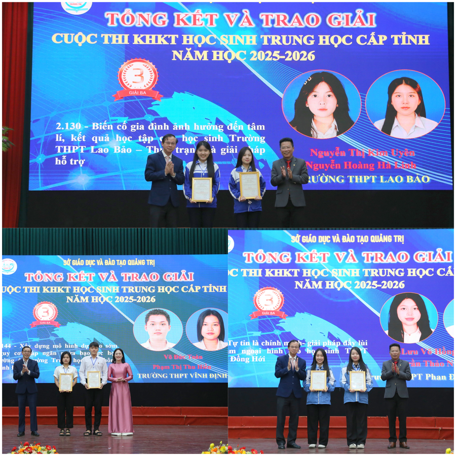 Cuộc thi KHKT học sinh trung học tỉnh Quảng Trị tiếp tục khẳng định là sân chơi khoa học, trí tuệ bổ ích, là bước phát triển cao của giáo dục STEM, góp phần đổi mới hình thức tổ chức dạy học, phương pháp đánh giá, phát triển phẩm chất và năng lực học sinh theo mục tiêu Chương trình GDPT 2018.