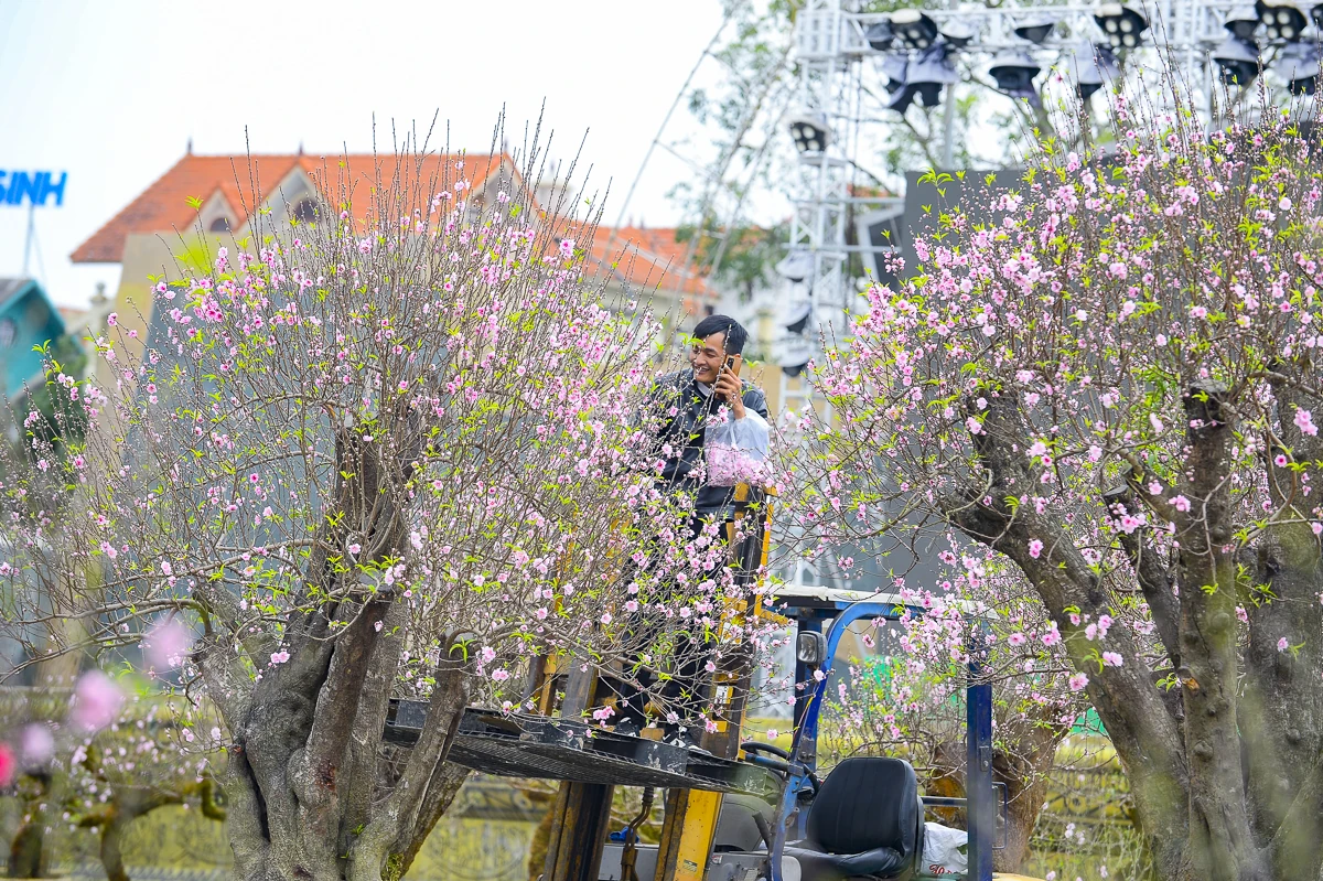 Anh Nguyễn Quang Thịnh, chủ một nhà vườn đến từ Mộc Châu, cho biết đã đưa khoảng 2.000 gốc đào về chợ hoa ở Quảng trường Lam Sơn, chủ yếu phục vụ nhu cầu thuê.