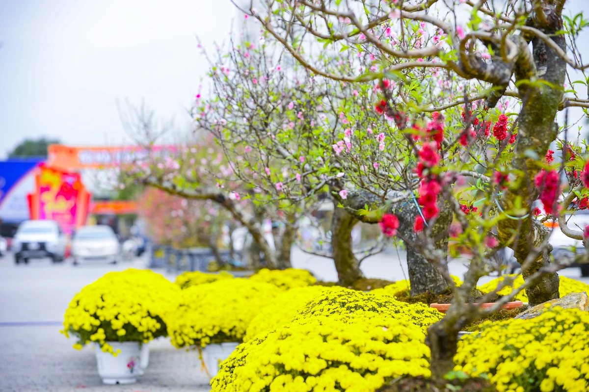 Từ sáng sớm đến tối muộn, khu vực chợ hoa ở Quảng trường Lam Sơn luôn nhộn nhịp. Những gốc đào thế được xếp ngay ngắn, quất cảnh trĩu quả vàng ươm, mai nở đúng độ, cúc mâm xôi bung sắc rực rỡ... tạo nên bức tranh xuân sống động giữa lòng đô thị.