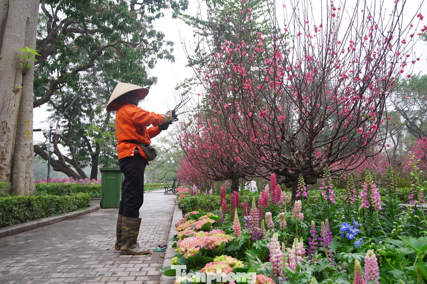 Phía đối diện, bờ hồ Hoàn Kiếm cũng đang được chỉnh trang cây cối, hoàn thiện những khâu cuối cùng đón Tết